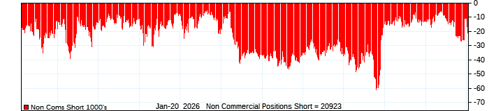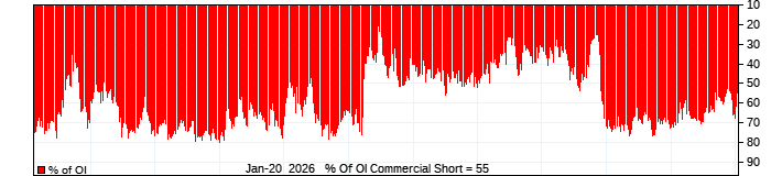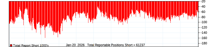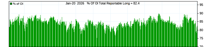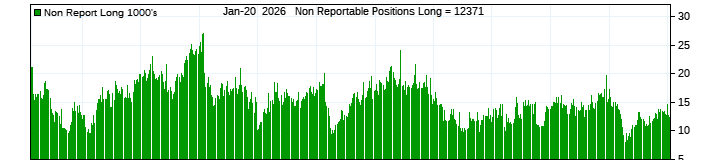 The top chart is fixed with the lower 3 panes available to show the various dataseries provided by the CFTC.