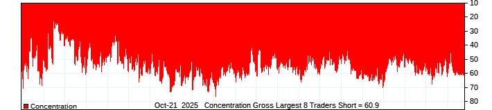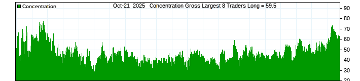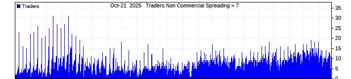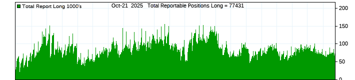 The top chart is fixed with the lower 3 panes available to show the various dataseries provided by the CFTC.