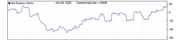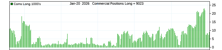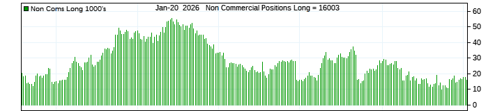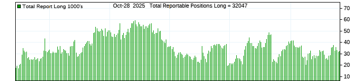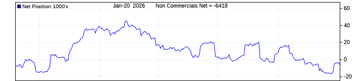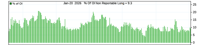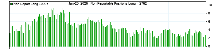 The top chart is fixed with the lower 3 panes available to show the various dataseries provided by the CFTC.