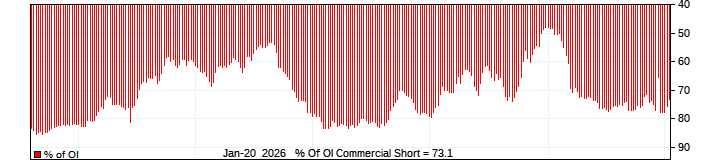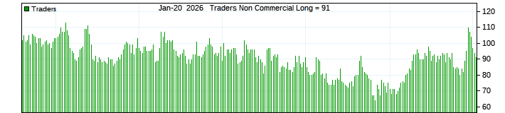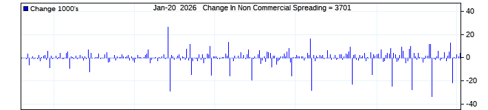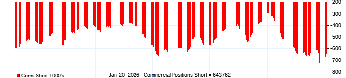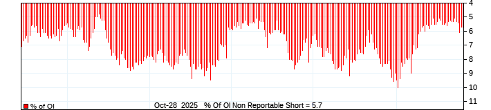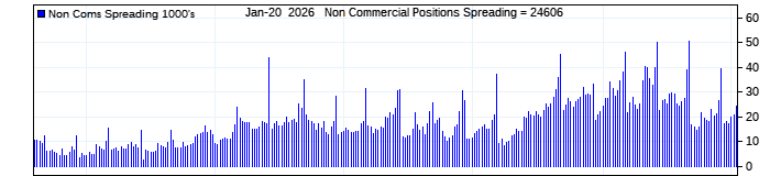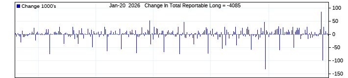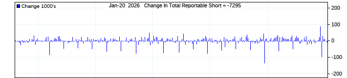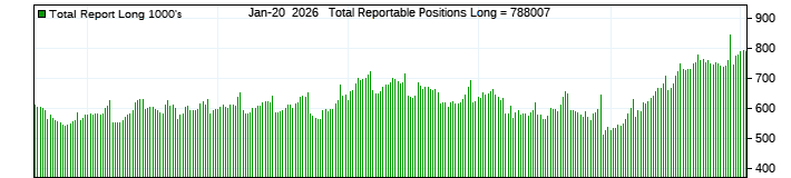 The top chart is fixed with the lower 3 panes available to show the various dataseries provided by the CFTC.