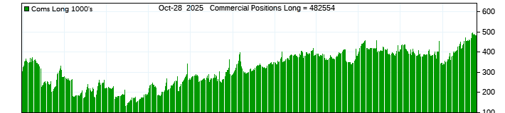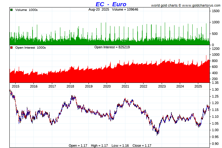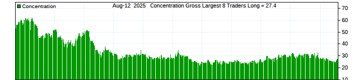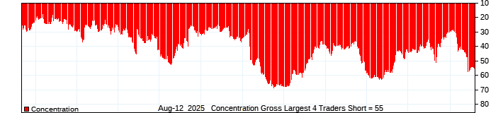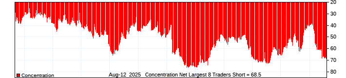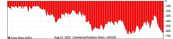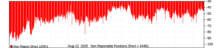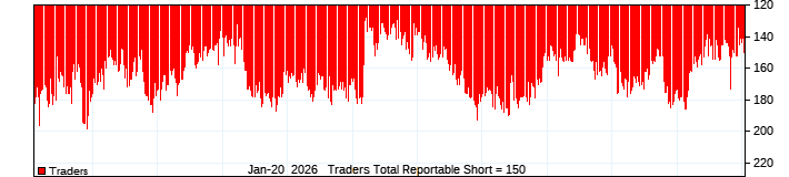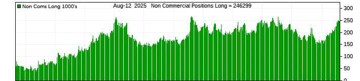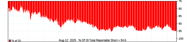 The top chart is fixed with the lower 3 panes available to show the various dataseries provided by the CFTC.