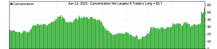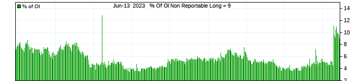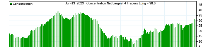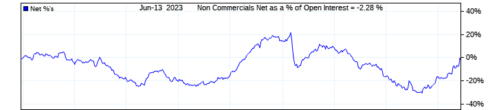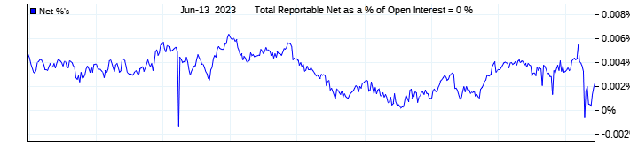 The top chart is fixed with the lower 3 panes available to show the various dataseries provided by the CFTC.