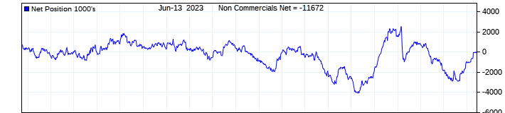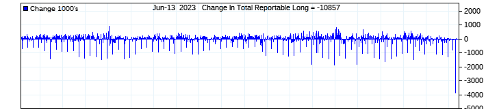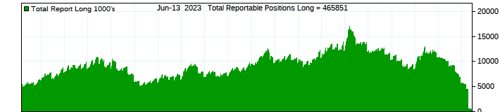 The top chart is fixed with the lower 3 panes available to show the various dataseries provided by the CFTC.