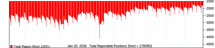 The top chart is fixed with the lower 3 panes available to show the various dataseries provided by the CFTC.