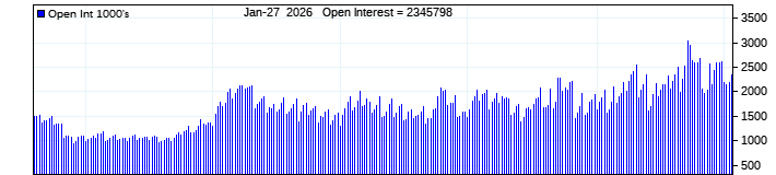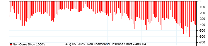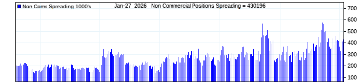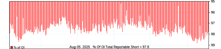 The top chart is fixed with the lower 3 panes available to show the various dataseries provided by the CFTC.