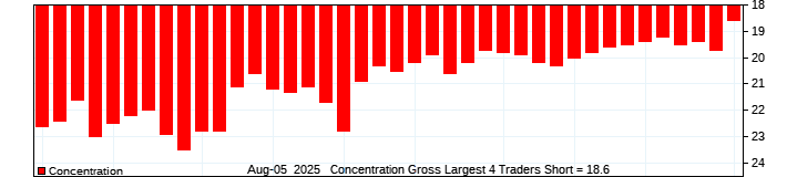 The top chart is fixed with the lower 3 panes available to show the various dataseries provided by the CFTC.
