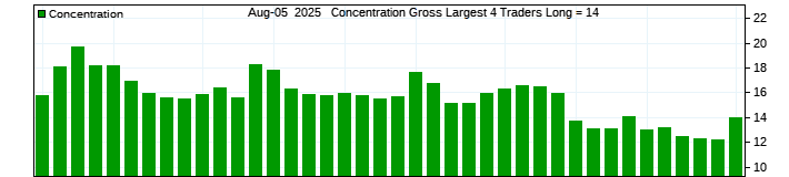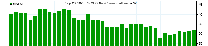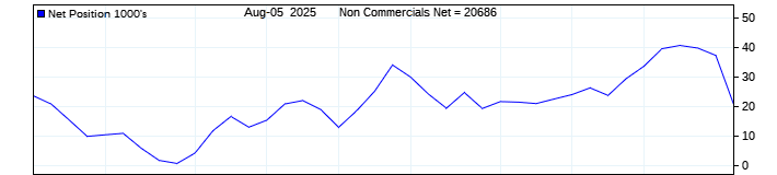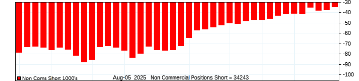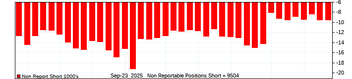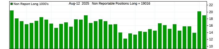 The top chart is fixed with the lower 3 panes available to show the various dataseries provided by the CFTC.