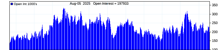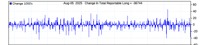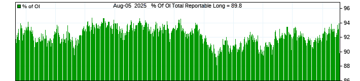 The top chart is fixed with the lower 3 panes available to show the various dataseries provided by the CFTC.