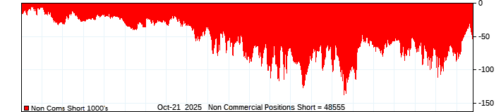 The top chart is fixed with the lower 3 panes available to show the various dataseries provided by the CFTC.