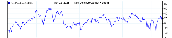 The top chart is fixed with the lower 3 panes available to show the various dataseries provided by the CFTC.