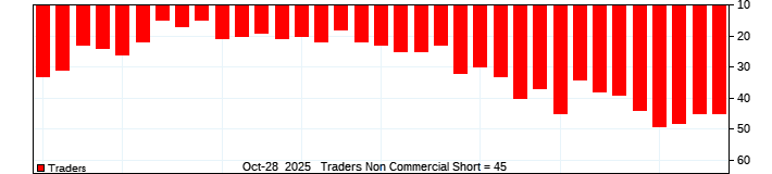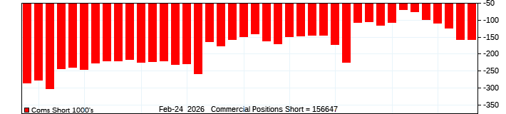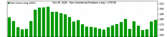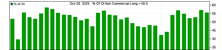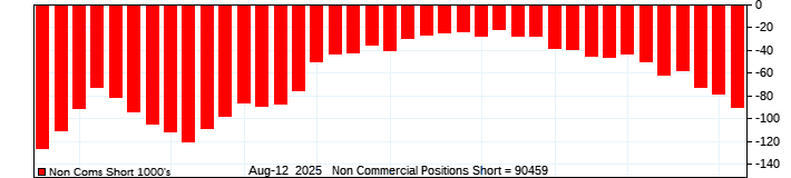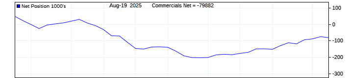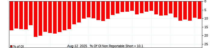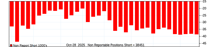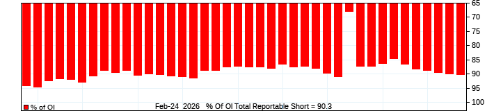 The top chart is fixed with the lower 3 panes available to show the various dataseries provided by the CFTC.