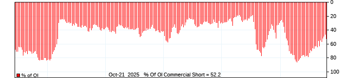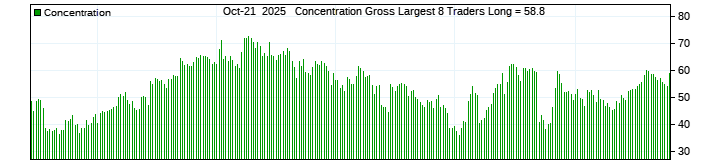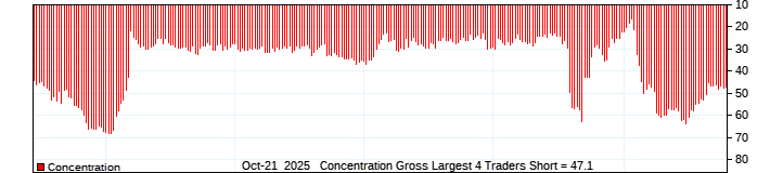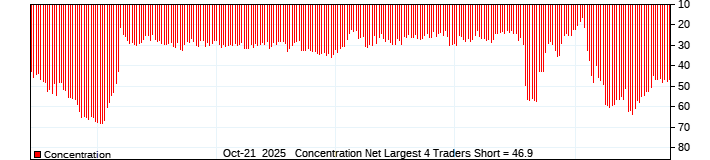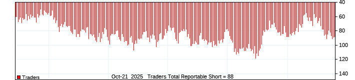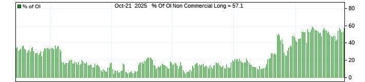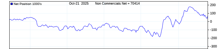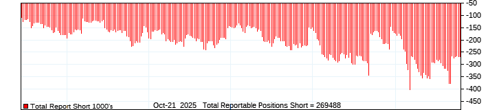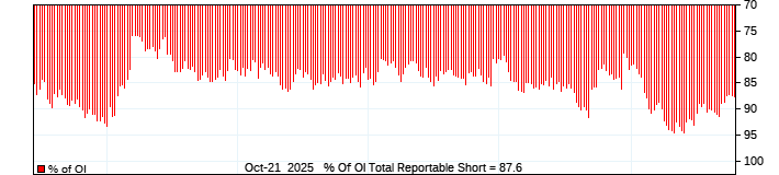 The top chart is fixed with the lower 3 panes available to show the various dataseries provided by the CFTC.