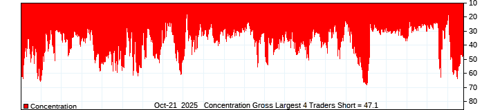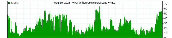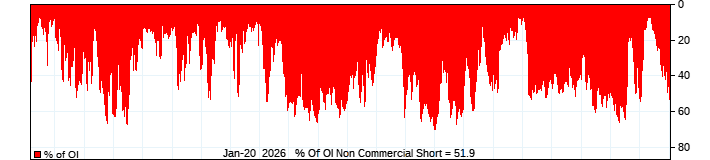 The top chart is fixed with the lower 3 panes available to show the various dataseries provided by the CFTC.