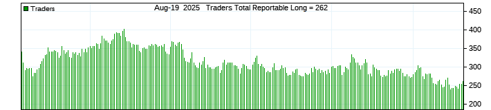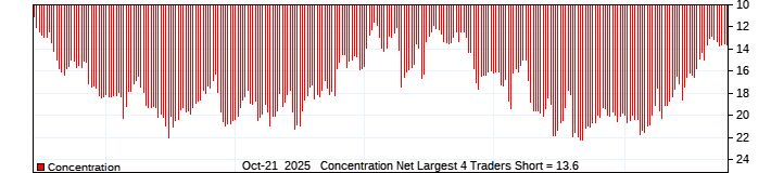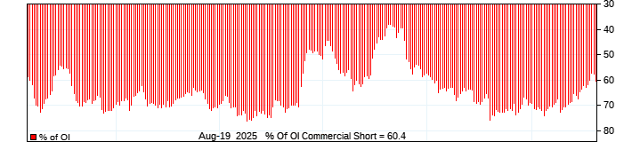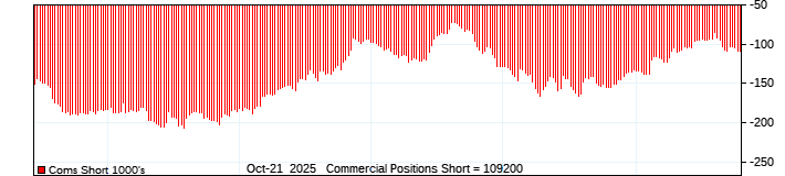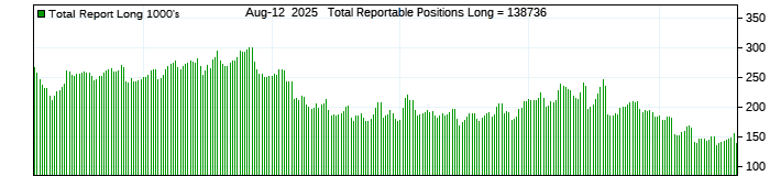 The top chart is fixed with the lower 3 panes available to show the various dataseries provided by the CFTC.