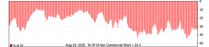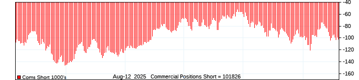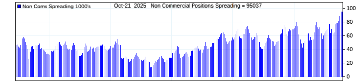 The top chart is fixed with the lower 3 panes available to show the various dataseries provided by the CFTC.