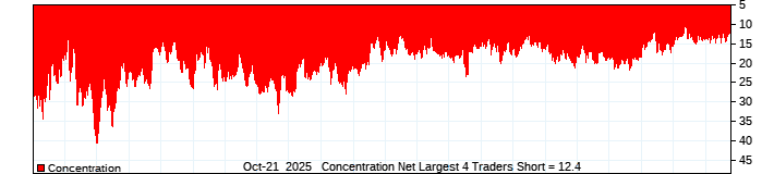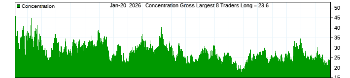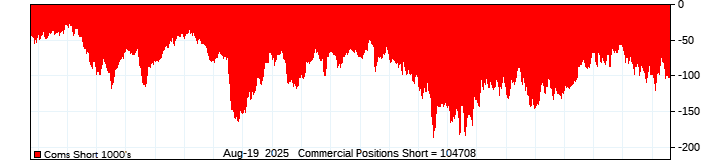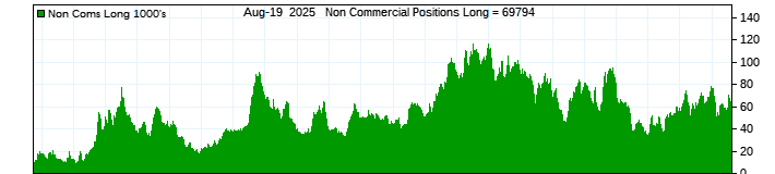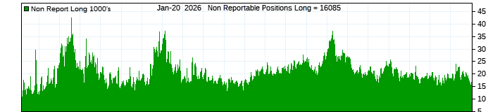 The top chart is fixed with the lower 3 panes available to show the various dataseries provided by the CFTC.