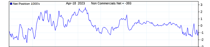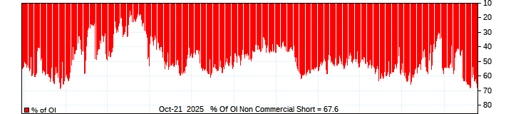 The top chart is fixed with the lower 3 panes available to show the various dataseries provided by the CFTC.