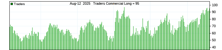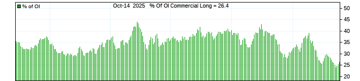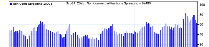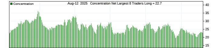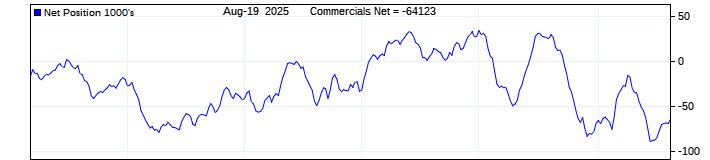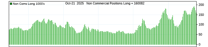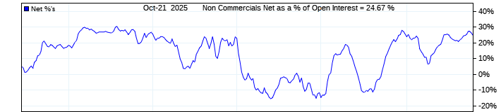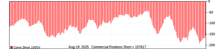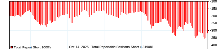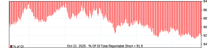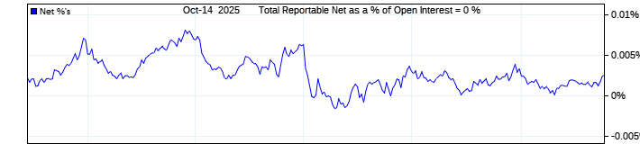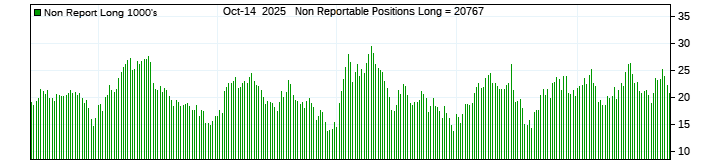 The top chart is fixed with the lower 3 panes available to show the various dataseries provided by the CFTC.