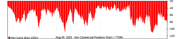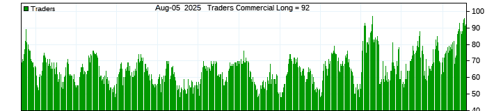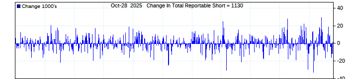 The top chart is fixed with the lower 3 panes available to show the various dataseries provided by the CFTC.