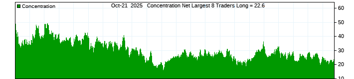 The top chart is fixed with the lower 3 panes available to show the various dataseries provided by the CFTC.