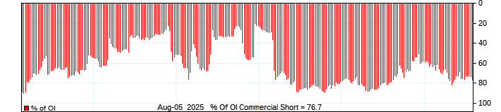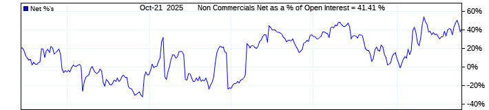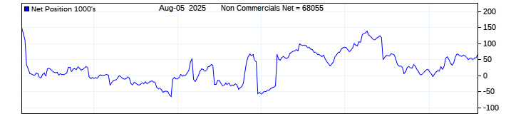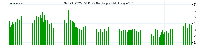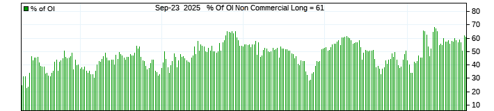 The top chart is fixed with the lower 3 panes available to show the various dataseries provided by the CFTC.