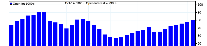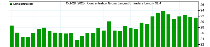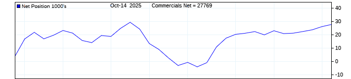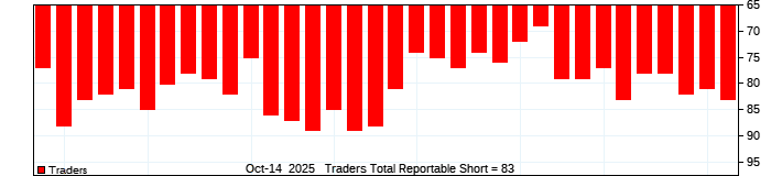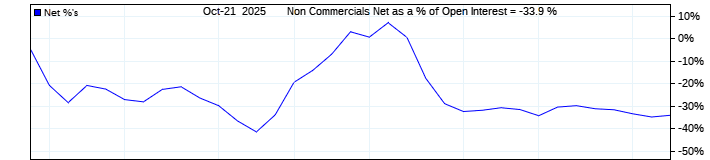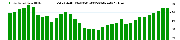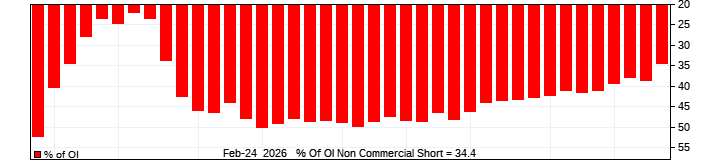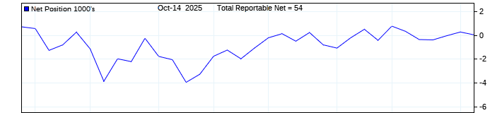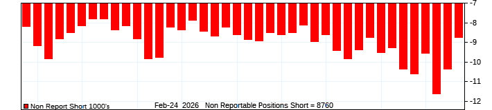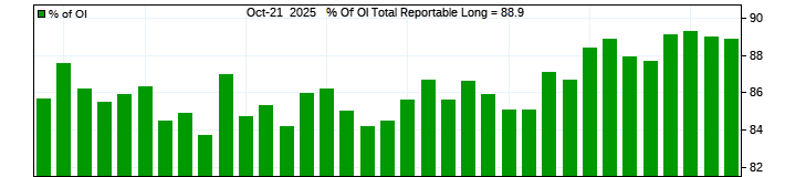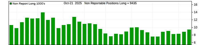 The top chart is fixed with the lower 3 panes available to show the various dataseries provided by the CFTC.