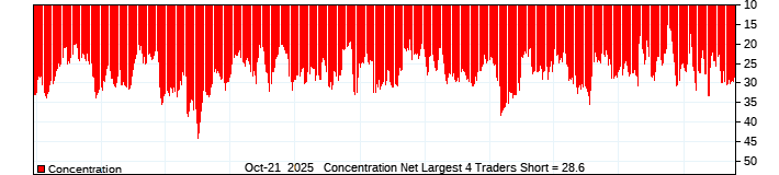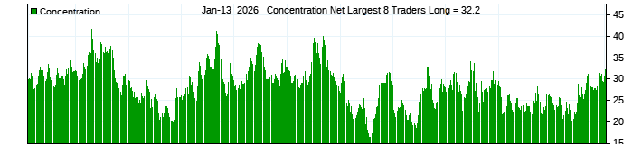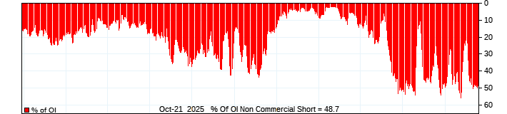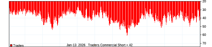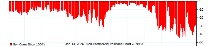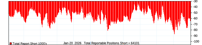 The top chart is fixed with the lower 3 panes available to show the various dataseries provided by the CFTC.