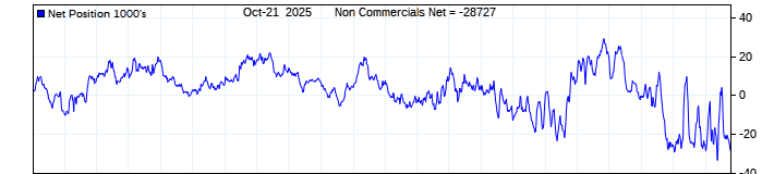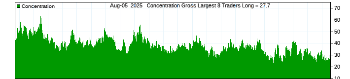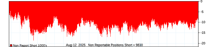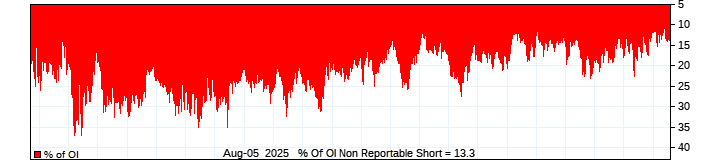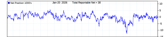 The top chart is fixed with the lower 3 panes available to show the various dataseries provided by the CFTC.