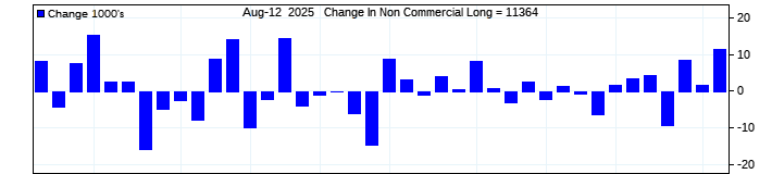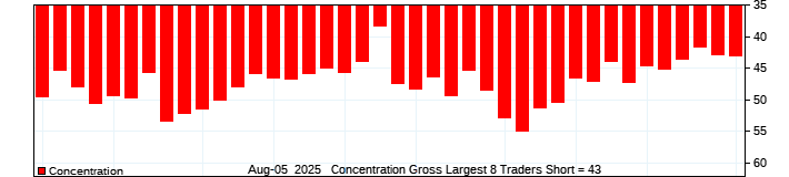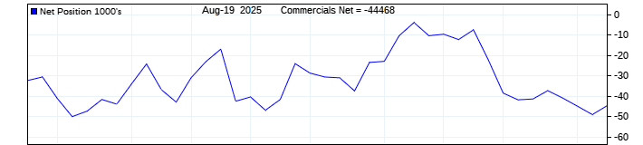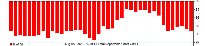 The top chart is fixed with the lower 3 panes available to show the various dataseries provided by the CFTC.