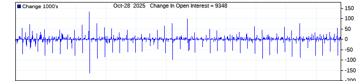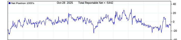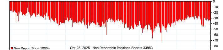 The top chart is fixed with the lower 3 panes available to show the various dataseries provided by the CFTC.
