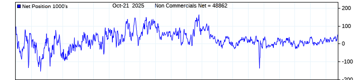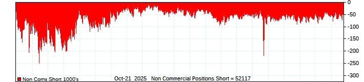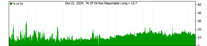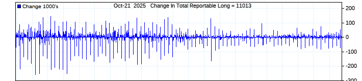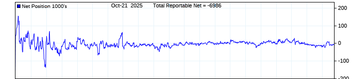 The top chart is fixed with the lower 3 panes available to show the various dataseries provided by the CFTC.