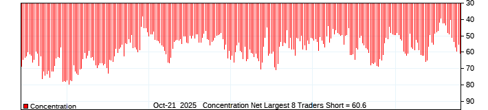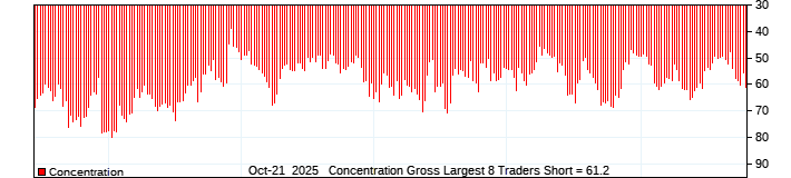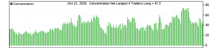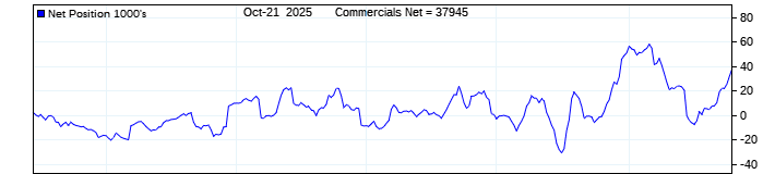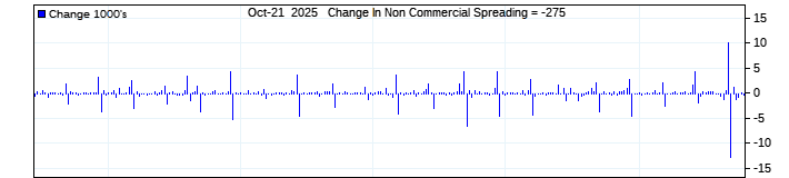 The top chart is fixed with the lower 3 panes available to show the various dataseries provided by the CFTC.