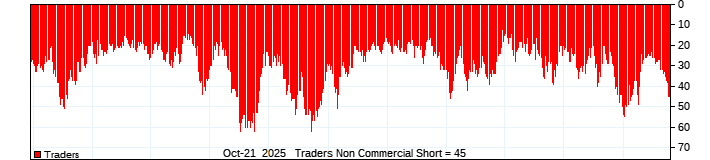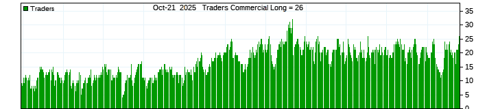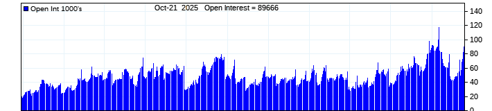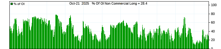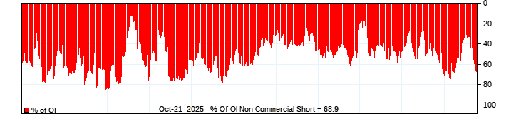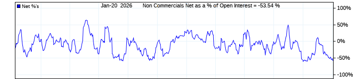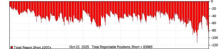 The top chart is fixed with the lower 3 panes available to show the various dataseries provided by the CFTC.