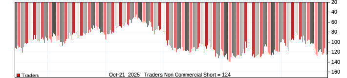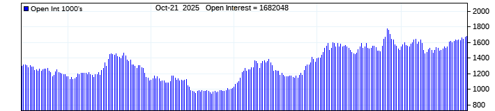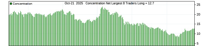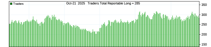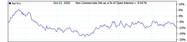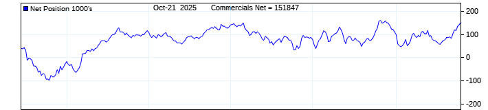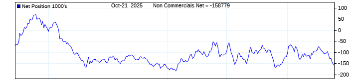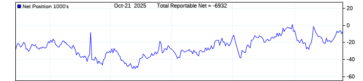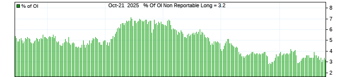 The top chart is fixed with the lower 3 panes available to show the various dataseries provided by the CFTC.