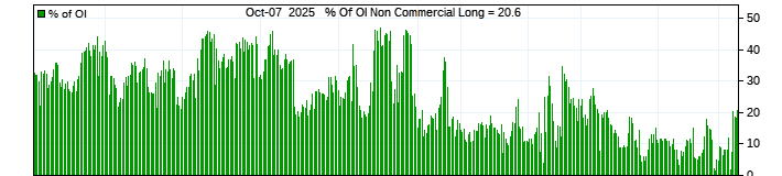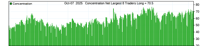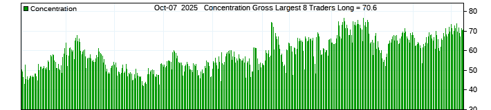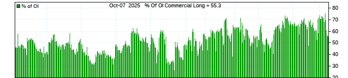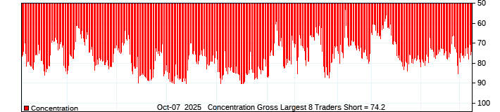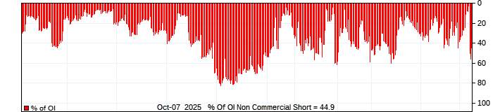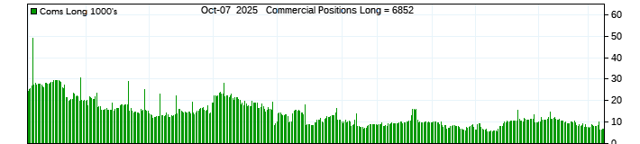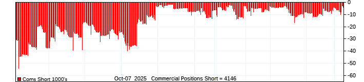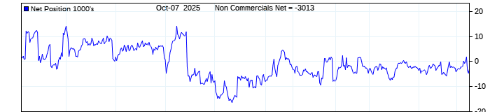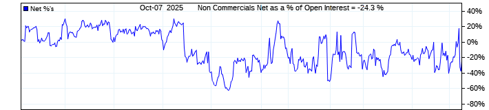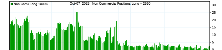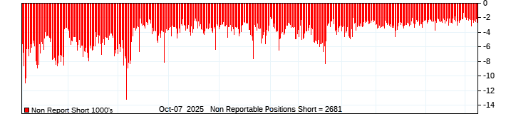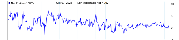 The top chart is fixed with the lower 3 panes available to show the various dataseries provided by the CFTC.