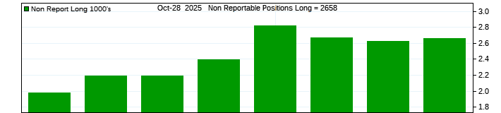 The top chart is fixed with the lower 3 panes available to show the various dataseries provided by the CFTC.