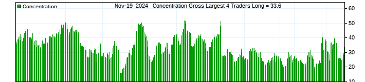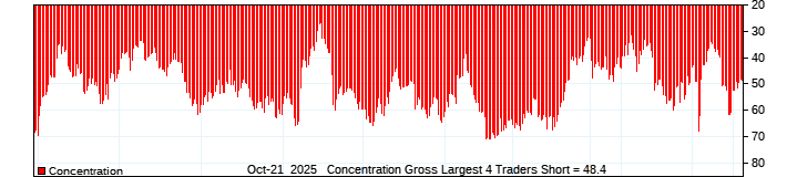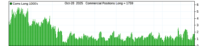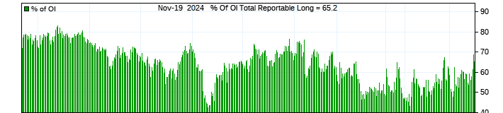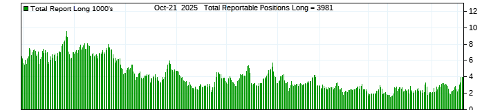 The top chart is fixed with the lower 3 panes available to show the various dataseries provided by the CFTC.