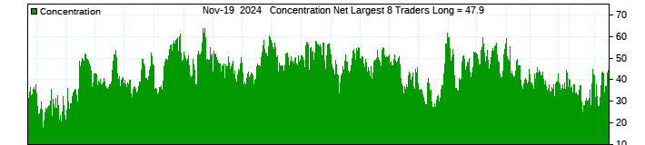 The top chart is fixed with the lower 3 panes available to show the various dataseries provided by the CFTC.