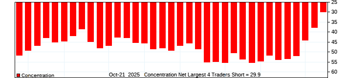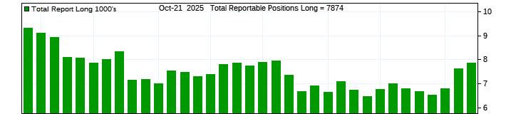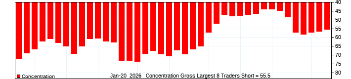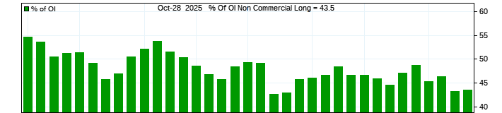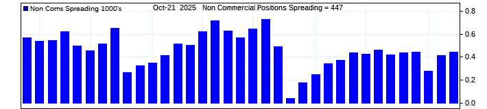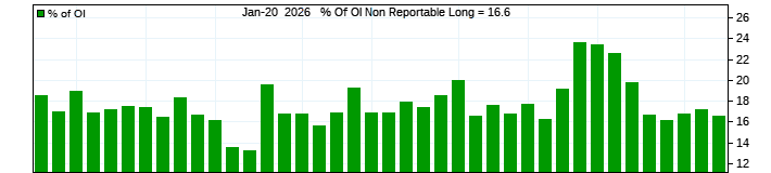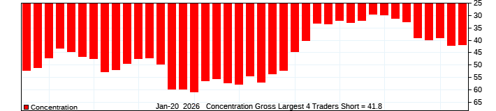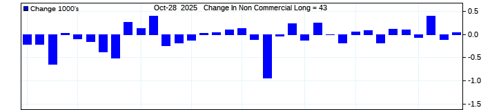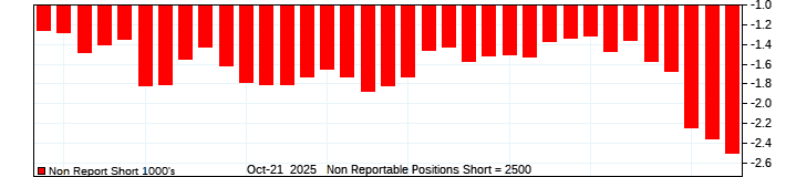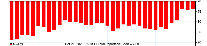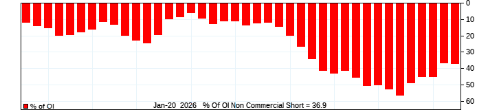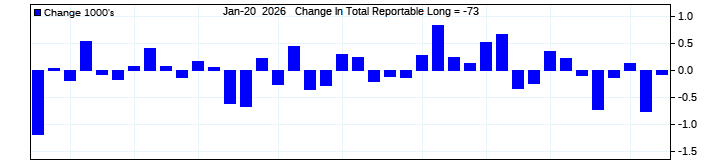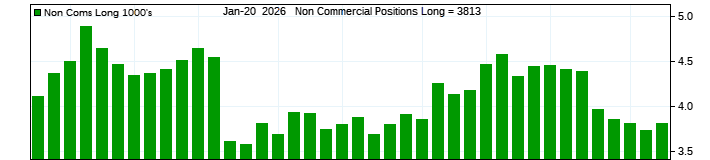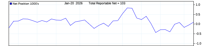 The top chart is fixed with the lower 3 panes available to show the various dataseries provided by the CFTC.