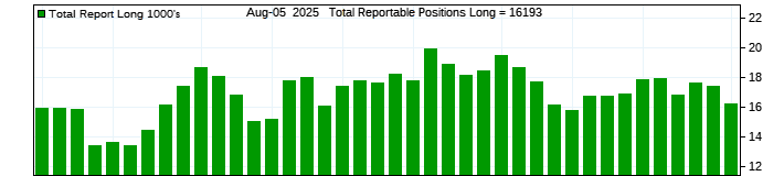 The top chart is fixed with the lower 3 panes available to show the various dataseries provided by the CFTC.