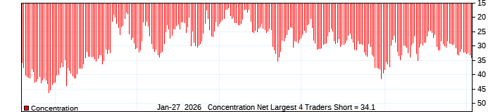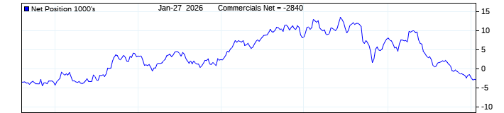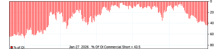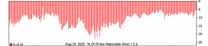 The top chart is fixed with the lower 3 panes available to show the various dataseries provided by the CFTC.