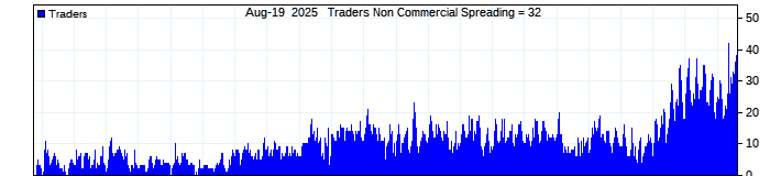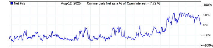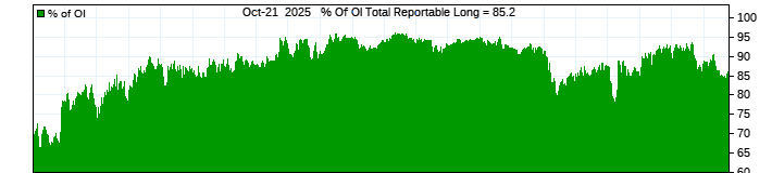 The top chart is fixed with the lower 3 panes available to show the various dataseries provided by the CFTC.