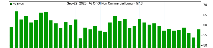 The top chart is fixed with the lower 3 panes available to show the various dataseries provided by the CFTC.