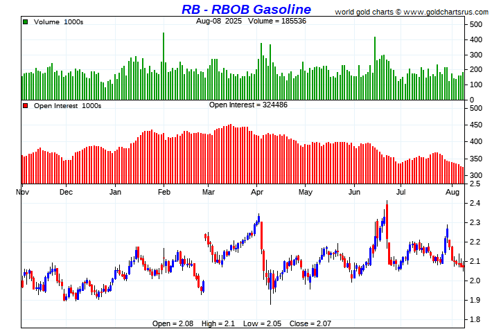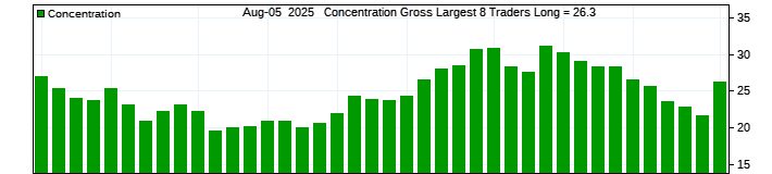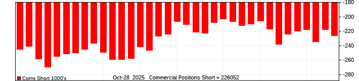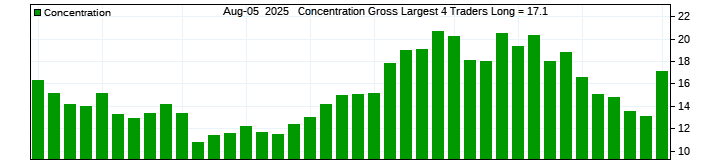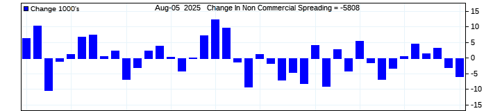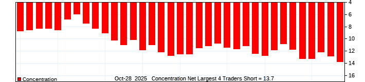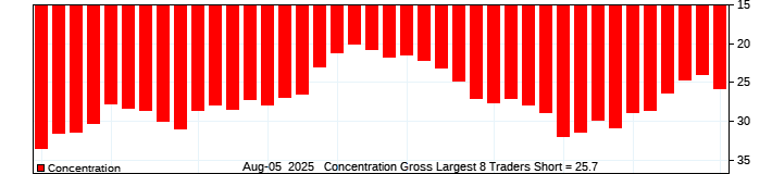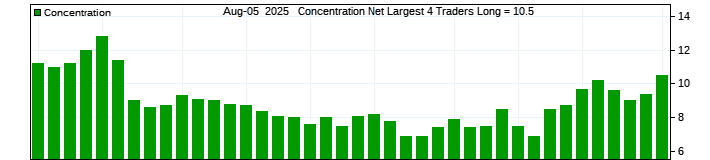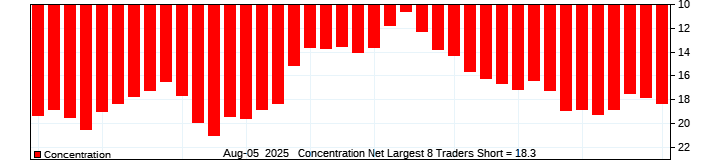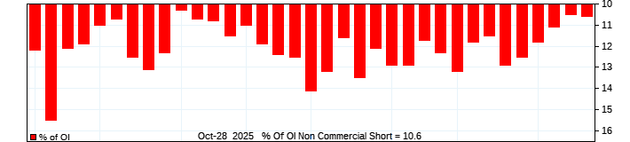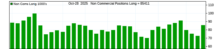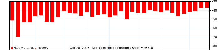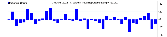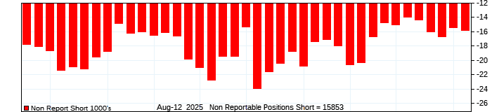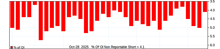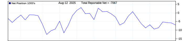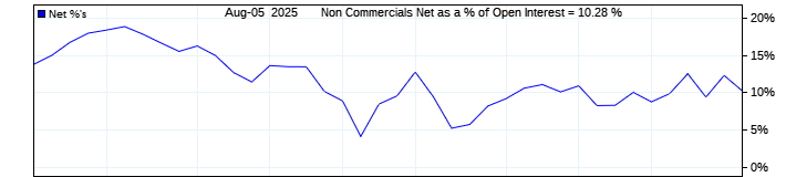 The top chart is fixed with the lower 3 panes available to show the various dataseries provided by the CFTC.