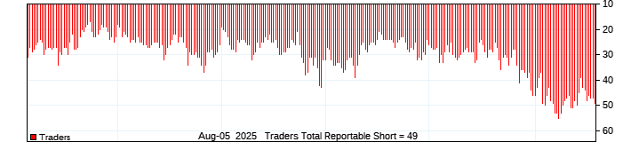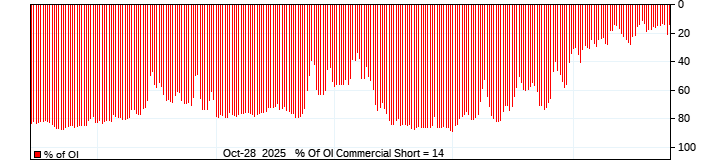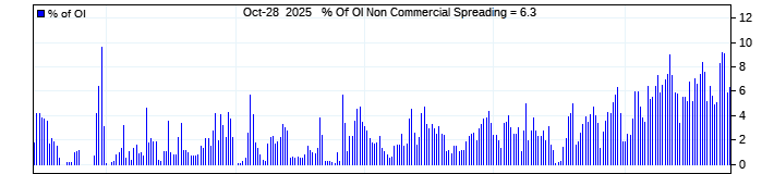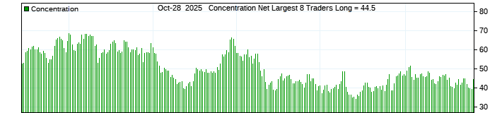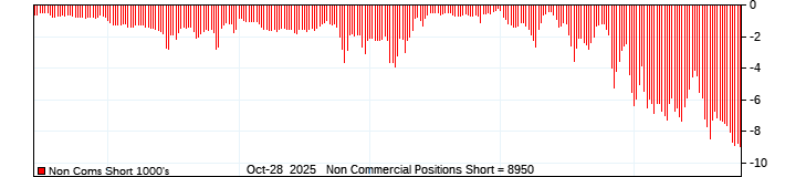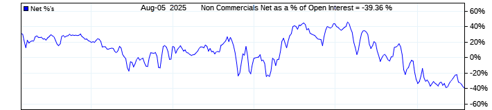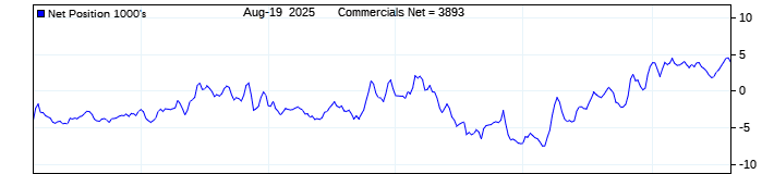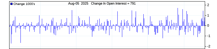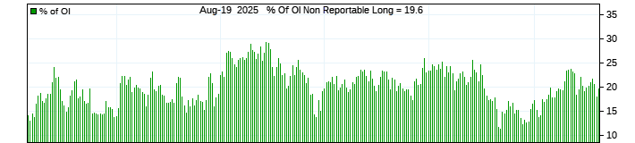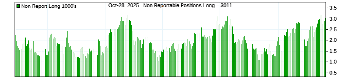 The top chart is fixed with the lower 3 panes available to show the various dataseries provided by the CFTC.
