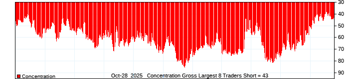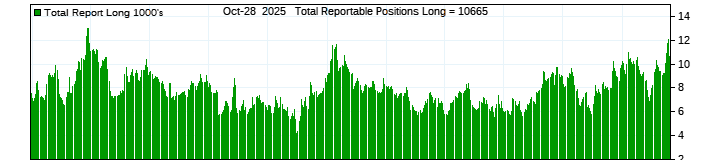 The top chart is fixed with the lower 3 panes available to show the various dataseries provided by the CFTC.