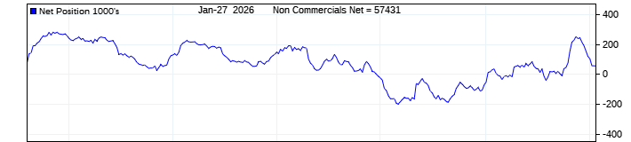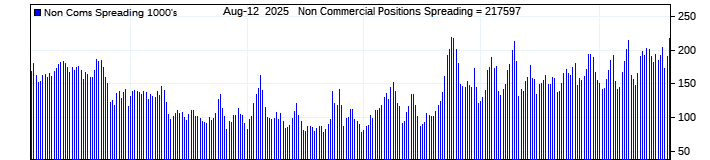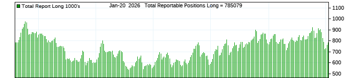 The top chart is fixed with the lower 3 panes available to show the various dataseries provided by the CFTC.