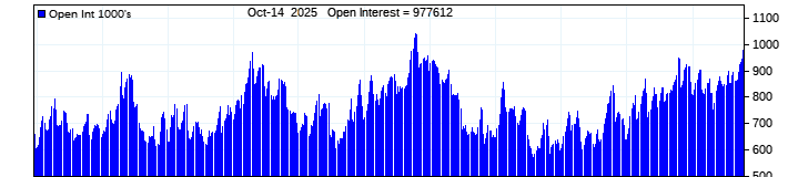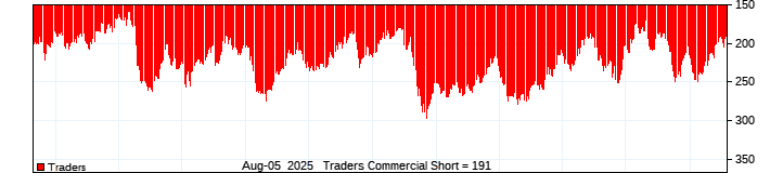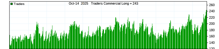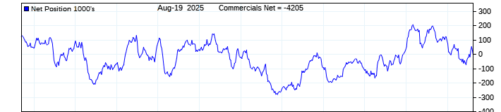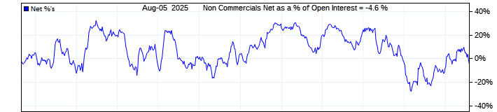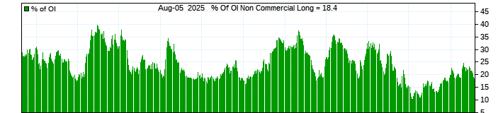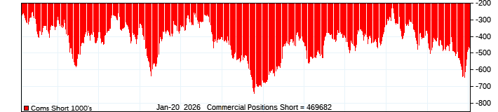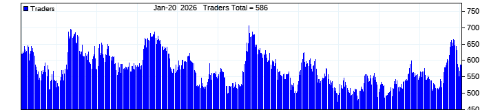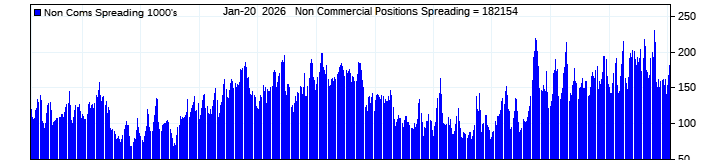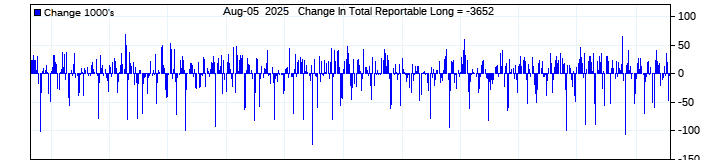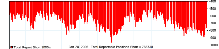 The top chart is fixed with the lower 3 panes available to show the various dataseries provided by the CFTC.