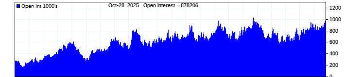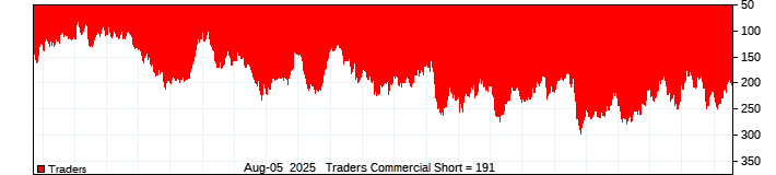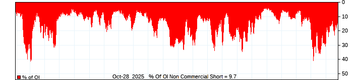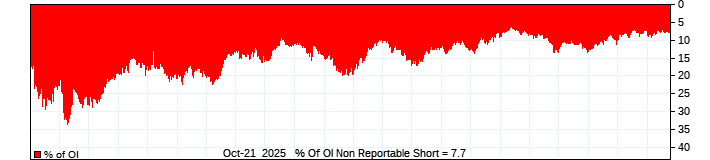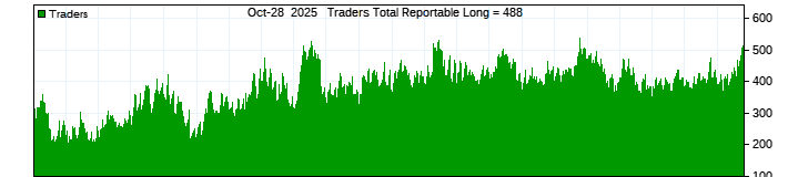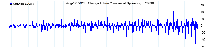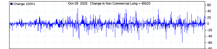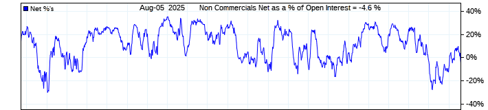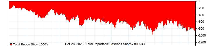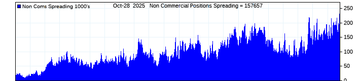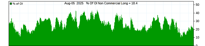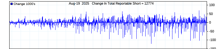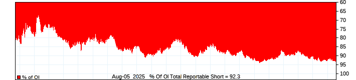 The top chart is fixed with the lower 3 panes available to show the various dataseries provided by the CFTC.
