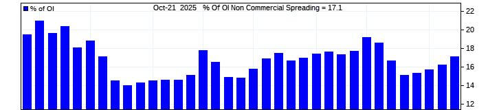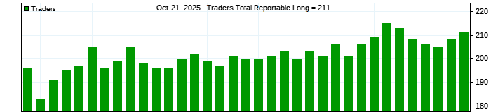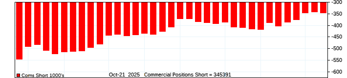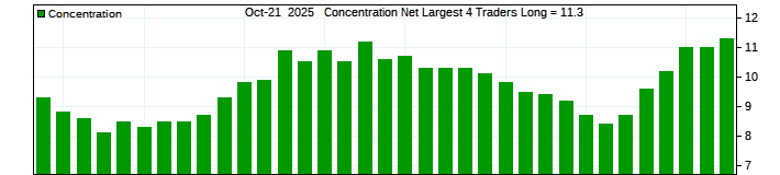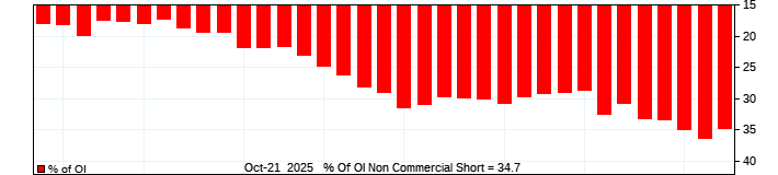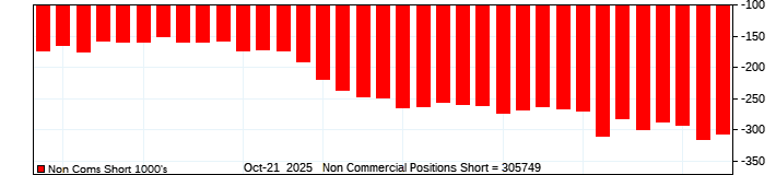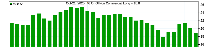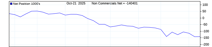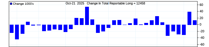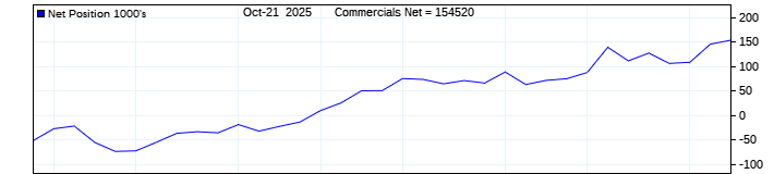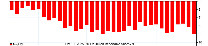 The top chart is fixed with the lower 3 panes available to show the various dataseries provided by the CFTC.